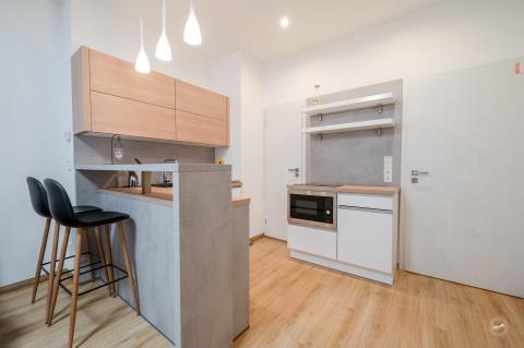 Nabízíme k pronájmu útulný byt o dispozici 1+kk a celkové ploše 29 m², situovaný v přízemí bytového domu v žádané lokalitě Praha 4 – Michle, ulice Počátecká. Byt je orientován do klidného vnitrobloku, což zajišťuje příjemné a tiché bydlení i přes výbornou dostupnost centra. Byt prošel rekonstrukcí a nabízí moderní a funkční řešení prostoru: podlahové vytápění nový kuchyňský kout se spotřebiči barové posezení automatická pračka vestavěná skříň v zádveří Interiér je řešen prakticky s důrazem na maximální využití prostoru a pohodlí nájemce. Velkou výhodou je výborná dopravní dostupnost: metro C – Budějovická metro C – Kačerov autobusové spojení V docházkové vzdálenosti se nachází kompletní občanská vybavenost – obchody, restaurace, služby, zdravotnická zařízení i sportovní vyžití. Byt je ideální volbou pro jednotlivce či pár hledající moderní bydlení v klidném prostředí s rychlou dostupností do centra města. V případě zájmu o více informací či sjednání prohlídky mě neváhejte kontaktovat.