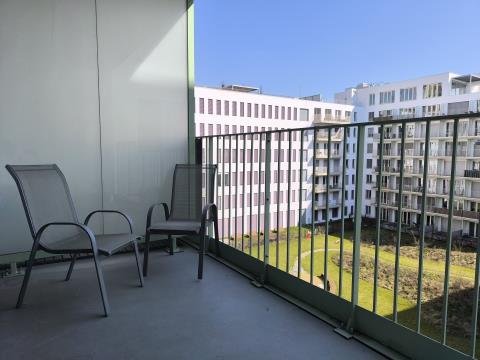 Vybavení: kuchyňská linka včetně spotřebičů (mikrovlnná trouba, sklokeramická varná deska, digestoř, lednice s mrazákem, myčka nádobí