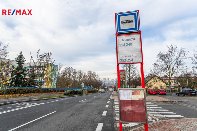 Zastávka MHD Morseova je necelých 200 m od domu – pohodlné spojení zajistí linky 154 a 240 na metro Háje (C) za 6 minut.