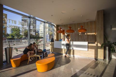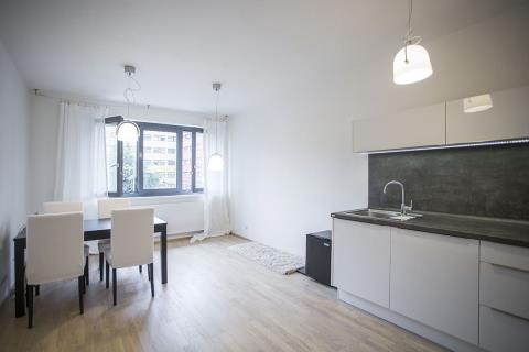 Rádi Vám zprostředkujeme pronájem atelieru určeného k bydlení (reálně pěkného bytu 1+kk) v novostavbě v komplexu Garden Towers v Olšanské ulici. Byt se nachází v 1. patře, je zařízen kuchyňskou linkou, ledničkou, jídelním stolem a židlemi, rozkládací sedací soupravou, dvěma šatními skříněmi v chodbě, pračkou a sušičkou Siemens. Budete mít možnost využívat společné terasy v pátém patře s výhledem na město. Parkování je možné zajistit přímo v domě (zpoplatněno). Projekt Garden Tower má vlastní 24/7 recepci a je populární zejména pro svůj moderní styl a velmi dobré spojení do centra města: chůzí 6 min. metro Želivského, tramvají 7 min. na Hlavní nádraží, 9 min. na Masarykovo nádraží, 11 min. na Václavské náměstí. OC Flora cca 12 minut pěšky. V těsné blízkosti je pošta, poliklinika a park. Byt je veden jako ateliér, nelze tedy vystavit potvrzení o zajištění ubytování. Z toho důvodu nemusí být vhodný pro cizince bez trvalého pobytu v ČR.