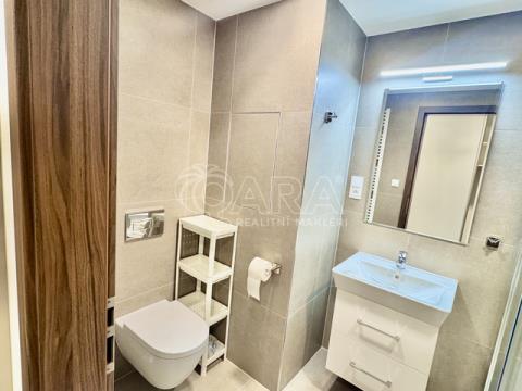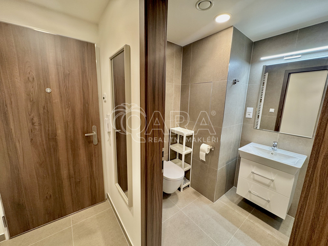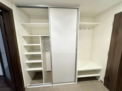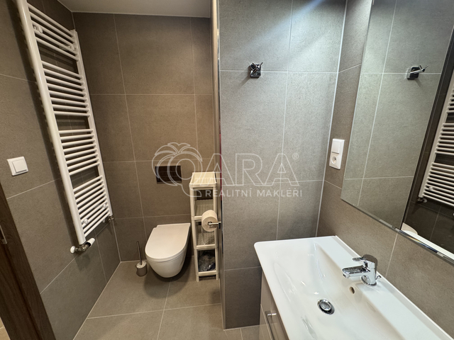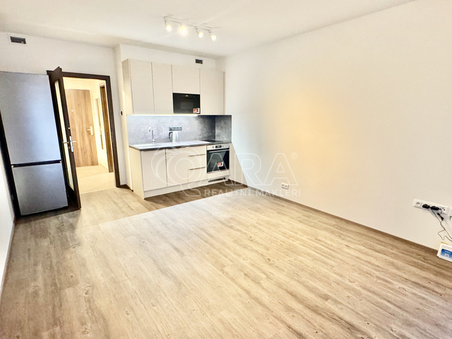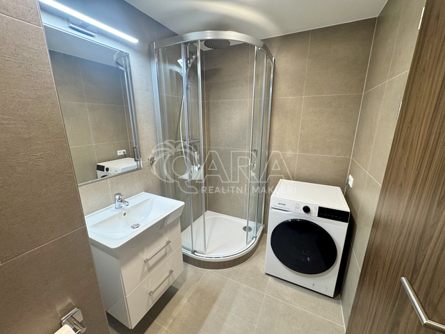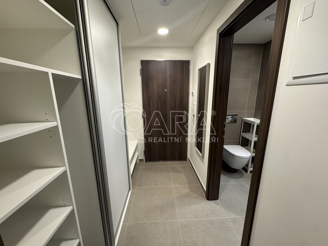 Nový byt o dispozici 1+kk se nachází ve 3. nadzemním podlaží moderního projektu Rezidence Tesla Hloubětín. Rezidence nabízí příjemné a klidné bydlení s výbornou dopravní dostupností i plnou občanskou vybaveností v okolí. Dispozici bytu tvoří vstupní chodba s vestavěnou skříní, hlavní obytná místnost s kuchyňským koutem, dále koupelna se sprchovým koutem a toaletou. Kuchyňská linka je plně vybavena spotřebiči – k dispozici je myčka, mikrovlnná trouba, trouba, elektrická varná deska a digestoř. Velká lednice s mrazákem. V koupelně je pračka se sušičkou. Byt je vybaven rekuperační jednotkou, která pomaha šetřit na vytapení bytu. Velkým benefitem bytu je prostorná lodžie orientovaná do vnitrobloku, která poskytuje příjemné soukromí. Byt se pronajímá jako nezařízený. V případě zájmu je možné dovybavení dle dohody. Součástí pronájmu je také sklepní kóje. Byt je k dispozici ihned. Měsíční poplatky činí 2 467 Kč, elektřina bude převedena na nájemce. Kauce je stanovena ve výši 38 000 Kč. Provize realitní kanceláře činí 9.450 Kč.