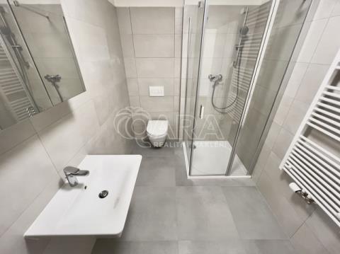 Bytová jednotka o výměře 37,1 m² se nachází ve 3. nadzemním podlaží novostavby z konce roku 2023 (dva výtahy jsou samozřejmostí). Byt se skládá z předsíně o výměře 6,9 m², ze které se dostaneme do obytné části o výměře 22,6 m², která je zařízena kuchyňskou linkou s elektrickou troubou, dvouplotýnkovou indukční varnou deskou a digestoří (další spotřebiče nebudou součástí nájmu). Z obytné části je přístupný balkon o výměře 3,2 m². Koupelna je přístupná z chodby a je vybavena sprchovým koutem, umyvadlem, skříňkou se zrcadlem a přípojkou na pračku. Dostatek místa na sušičku je samozřejmostí. WC je v koupelně. Byt se pronajímá jako nezařízený, tudíž si jej můžete vybavit podle svých vlastních představ. Garážové parkovací stání pro jedno auto (není podmínkou nájmu) je v 1. PP.