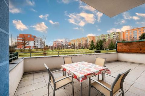 Pronájem hezkého, částečně vybaveného bytu o dispozici 1+kk s velkou terasou a garážovým stáním v klidné lokalitě na Praze 9 - Letňanech v ulici Chlebovická. Jednotka o velikosti 40 m2 + 25 m2 terasa se nachází ve 2. podlaží bytového domu s výtahem. V bytě budete mít k dispozici skříňky, konferenční, televizní stolek, jídelní stůl a židle. Kuchyňská linka je vybavena vestavěnou lednicí s mrazákem, pečící troubou, varnou deskou a digestoří. Velká manželská postel je prakticky v bytě umístěna, tak aby z ní nebyl výhled do kuchyně. V koupelně je sprchový kout, umyvadlo, WC a pračka kombinovaná se sušičkou. Na chodbě je vestavná skříň. Pohovka na fotografiích není součástí vybavení. V místnosti je plovoucí podlaha a ve zbylých částech bytu je dlažba. Okana bytu s výhledem na travnatý parčík jsou orientována na ideální jižní stranu. Na terase budete moci využívat venkovní stůl a židle. Byt je nově vymalovaný. Součástí pronájmu je i garážové stání a sklepní kóje o velikosti 3 m2. Cena nájmu je 18 500 Kč/měs. + poplatky 3 124Kč + elektřina dle spotřeby. Společné prostory domu jsou udržované a čisté. Kousek od domu je zastávka autobusu Boletická, ze které se za 3 min. dostanete na zastávku metra C Letňany. V OC Letňany najdete vše potřebné pro váš nákup. Potraviny můžete nakupovat v obchodě U Olivera, který je hned u domu nebo v Penny marktetu, který je zhruba 7 min. chůzí od domu. V okolí také najdete, restaurace, školu, školku, aquapark a sportoviště. Pokud vám vyhovuje bydlet v lokalitě s veškerou občanskou vybaveností a dobrým spojením do centra, zavolejte mi nebo napište a byt vám osobně ukáži.