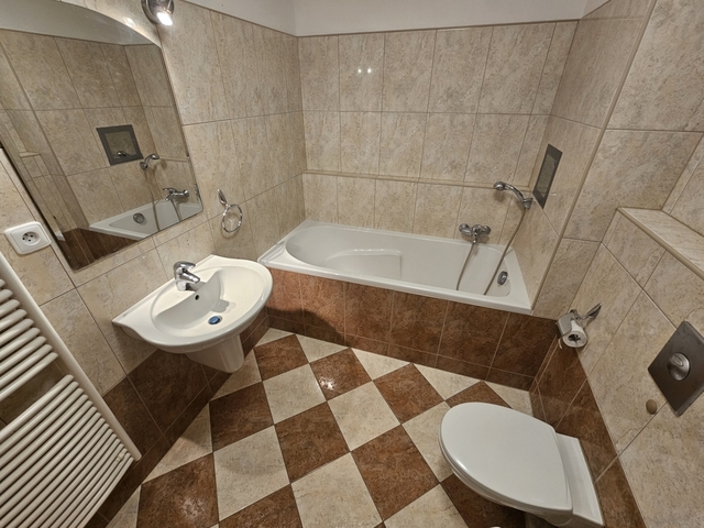 Pronájem bytu - velmi pěkný, nezařízený byt 1+kk, 41 m2 + sklep 4 m2 + možnost pronájmu garážového stání, Praha 6 - Břevnov, ulice 8.listopadu, 2. patro v obytném domě z roku 2004 s výtahem. Dům je rohový, orientace bytu je do ulice Bělohorská. Dům je klidný, obývaný slušnou klientelou. Byt sestává ze vstupní chodby (7 m2), ze které je vstup do oddělené samostatné kuchyně (5 m2), prostorného pokoje (24 m2) a koupelny s WC (5 m2). Byt se nabízí nezařízený nábytkem. K dispozici je kuchyňská linka se sklokeramickou varnou deskou a el. troubou, nová lednice s mrazákem, myčka a pračka v koupelně. V chodbě jsou velké vestavěné šatní skříně. V prostorné koupelně je vana a WC. Na podlaze je plovoucí podlaha a dlažba. Topení je el. akumulačními kamny. Ohřev vody je bojlerem. Vchodové bytové dveře jsou bezpečnostní. K bytu náleží sklep 4 m2 v 1.PP a dále možnost pronájmu garážového stání (15 m2) v 1.PP za 1.500 Kč měsíčně. Dům se nachází v centru Břevnova. 1 zastávka tram nebo pěší chůzí je Břevnovský klášter s okrasnou klášterní zahradou, park Ladronka nebo rozsáhlý lesopark Obora Hvězda. Veškerá občanská vybavenost je v místě - v domě je supermarket Albert a v těsné blízkosti rozsáhlá maloobchodní síť a služby včetně polikliniky. V okolí je mnoho příjemných kaváren, bister, restaurací i cukráren. Výborná dopravní dostupnost do centra - do 5 min chůze tram č. 22 a 25 s přímým spojením do samotného centra Prahy a na Metro A - Hradčanská nebo Metro A - Malostranská. Letiště Václava Havla je vzdálené pouhých 15 min. autem od domu. Byt je výhradně nekuřácký, je vhodný pro max 1-2 osoby (pár), domácí zvířátka nelze. Byt je volný ihned. Vratná kauce je 30.000 Kč.