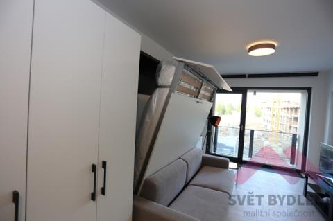 411. 1+kk,41m2,balkon, zařízeno!, luxusní novostavba přímo u metra Křižíkova, P-8 Karlín ul. U Mlýnského kanálu. Velice světlý byt (orientace na východ) se nachází v 4.patře s výtahem novostavby, která je provedena ve vysokém standartu v lukrativní nové části Karlína přímo u metra Křižíkova. Byt je kompletně vybaven moderním nábytkem včetně televize (viz. foto) dále je k dispozici kuchyňská linka s vestavěnými spotřebiči (lednička, myčka, sporák, pračka) a praktická šatna . K bytu náleží sklepní kóje, která je umístěna v suterénu domu. Volné ihned! Nájem: 21.500Kč + 3.000Kč služby (vytápění, voda, výtah, úklid domu atd..) + elektřina (elektroměr se převádí na nájemce (spotřeba cca. 1.000Kč) Podmínky: Bez domácích zvířat, Volné ihned!