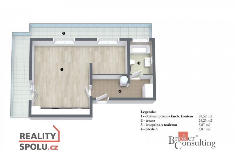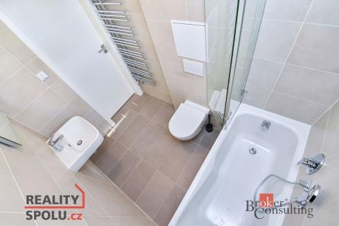 Nabízíme Vám k dlouhodobému pronájmu prostorný byt 1kk o ploše 42,5 m2 + terasa 24 m2, se západní orientací a krásným výhledem na Pražský Hrad. Byt se nachází v 4. posledním podlaží s výtahem v rezidenčním projektu Vila Rokoska v Praze 8, ul. Nad Rokoskou. Jedná se o byt kolaudovaný v roce 2021. Byt je k nastěhování od 1. února 2026. Dispozice: předsíň (6,9 m2), koupelna (3,9 m2), obývací pokoj (29 m2) s kuchyňským koutem a prostorem na spaní ). Kuchyňská linka je vybavena kompletně vestavěnými spotřebiči (lednice s mrazákem, sklokeramická varná deska, el. trouba, myčka, digestoř, mikrovlnná trouba). V bytě je vlastní plynový kotel k vytápění a ohřev teplé vody, což je velkou výhodou, jelikož můžete ovlivnit vlastní spotřebu. Dále v bytě je klimatizační jednotka a v předsíni šatní skříň, na podlaze je vinyl a v koupelně dlažba, okna jsou se žaluziemi a trojskla. Koupelna je světlá s oknem, toaletou, vanou se zástěnou a umyvadlem. Prostor na pračku je v předsíni. K bytu náleží sklep v přízemí domu a parkovací místo v samostatné garáži, již zahrnuto v ceně nájmu. Měsíční nájem činí 21.000 Kč, zúčtovatelné zálohy na veškeré energie a služby vč. elektřiny 5.500 Kč/měsíc. Jistota (vratná kauce) je ve výši 30.000 Kč, dále se platí provize RK 25.410 Kč vč. DPH. Nedaleko se nachází ZOO, Botanická zahrada, bazén Šutka, park Stromovka a cyklostezka v Troji. Díky lokalitě se jedná o byt s velmi dobrou dopravní dostupností, autobusová zastávka se nachází nedaleko domu, v centru města jste do 15 minut, metro =C= Holešovice je pouze 1 zastávku autobusem. Byt je v blízkosti výjezdu na pražský okruh směr centrum a tunel Blanka. Byt vřele doporučuji.