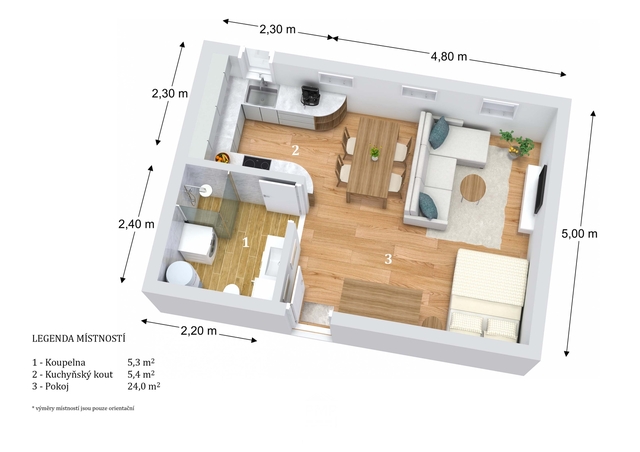 Hledáte útulné bydlení v klidné lokalitě s výbornou dostupností do centra? Pak je tato nabídka právě pro Vás! Nabízíme Vám k pronájmu pěkný byt o dispozici 1+kk na ulici Bedřicha Smetany v Boskovicích, který je k dispozici ihned. Byt o celkové výměře 35 m² se nachází v 1. nadzemním podlaží budovy „Dům zdraví“, kde sídlí mimo jiné několik lékařských ordinací, což zajišťuje klidné a udržované prostředí. Lokalita je oblíbená pro dostatek zeleně, příjemné okolí a zároveň skvělou dostupnost do centra města i k veškeré občanské vybavenosti. Interiér bytu je prakticky řešený a připravený k okamžitému nastěhování. Kuchyňská linka je vybavena spotřebiči – myčkou, lednicí, troubou a varnou deskou. Koupelna disponuje sprchovým koutem, toaletou, umyvadlovou skříňkou a pračkou. Součástí vybavení je také skříň, sedačka a stůl se čtyřmi židlemi. Vstupní chodba určená pouze pro tento byt disponuje botníkem s věšáky a skříní, jako úložný prostor navíc. Vytápění bytu je podlahové. Byt je ideální pro jednotlivce nebo pár (max. 2 osoby). Majitel preferuje nájemce bez domácích mazlíčků. Energetická náročnost budovy: třída D. Výměry místností: koupelna - 5,3 m² kuchyňský kout - 5,4 m² pokoj - 24 m² Nájemné: 11.000,- Kč / měsíc Paušální platba za energie: 2.850,- Kč Kauce: 20.000,- Kč + Provize RK Boskovice leží na střední Moravě asi 40 km severně od Brna na hranici mezi Boskovickou brázdou a Drahanskou vrchovinou v nadmořské výšce asi 380 metrů. Boskovice jsou obklopeny pěknými lesy Drahanské vrchoviny a pro své krásné okolí se stávají centrem turistiky a odpočinku. Nejbližší okolí nabízí zajímavé možnosti pro pěší turistiku a cykloturistiku. Najdeme zde řadu značených turistických tras, které směřují do klidových zón Kunštátska. Boskovice se nacházejí v severní části Moravského krasu se Sloupsko-Šošůvskými jeskyněmi a dalšími lokalitami krasového území. Historické jádro města je včetně židovského ghetta od roku 1990 městskou památkovou zónou.