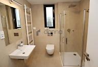 Nabízíme k dlouhodobému pronájmu úplně nový byt 1+kk, 40m2 + lodžie cca 3 m2 + sklep 3,3 m2, ve 4. patře novostavby se 2 výtahy, ul. V Třešňovce, Praha 9 - Hrdlořezy. Byt je částečně zařízený. Ve vstupní chodbě jsou vestavěné skříně, které nabízejí dostatek úložného prostoru. Odsud je vchod do koupelny se sprchovým koutem, toaletou a umyvadlem. Je zde i příprava na pračku. Obývací pokoj je velmi prakticky vyřešen. Za zástěnou se nachází dvojlůžko (matrace si klient musí pořídit sám), tím je velmi vhodně oddělená klidná zóna od ostatního prostoru. Kuchyňský kout je vybaven všemi potřebnými spotřebiči: velká lednice s mrazákem, myčka, indukční varná deska, el. trouba a digestoř. Naproti kuchyni je stěna opatřená poličkami a skříňkami. Byt je slunný, proto jsou okna opatřená vnějšími el. žaluziemi. Výhodou je i lodžie o ploše cca 3 m2. Podlahy dřevěné, koupelna - dlažba. Rekuperace v bytě. Topení podlahové. Součástí nájmu je i garážové stání v suterénu budovy. Ihned k nastěhování, max. 2 osoby. Nákupní možnosti: v blízkosti domu je Kaufland, spojení do centra prostřednictvím MHD - stanice tram Spojovací a zastávky bus.