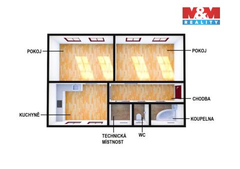 K pronájmu, Byt 2+1, 51 m2 Třebíč, M. Majerové