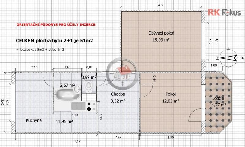K pronájmu, Byt 2+1, 55 m2 Náměšť nad Oslavou