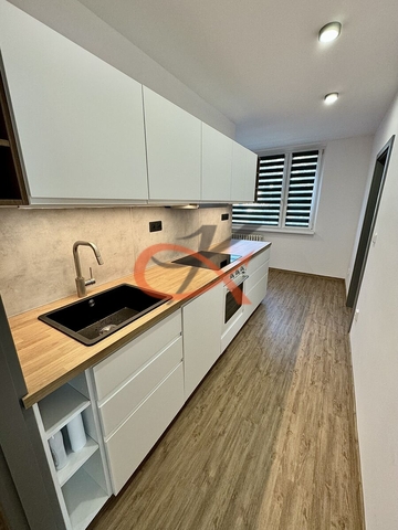 Pronájem bytu 2+1 na ul. 5. května v Rožnově pod Radhoštěm. Jednotka je situovaná na I. nadzemním podlaží revitalizovaného panelového domu bez výtahu, v klidné a oblíbené jednosměrné ulici s okolní bytovou zástavbou. Byt v osobním vlastnictví o podlahové ploše 54m² prošel kompletní rekonstrukcí a je připraven k užívání novému nájemci a bude předán tak, jak je zachyceno na fotografiích. Byt sestává ze dvou neprůchozích pokojů, kuchyně s jídelním koutem, koupelny s WC a sprchovým koutem, chodby a komory, kterou lze využít jako šatnu, pracovnu či sklad méně používaných věcí. Součástí kuchyňské linky jsou zabudované nové spotřebiče – indukční varná deska, digestoř, horkovzdušná el. trouba a myčka na nádobí. Podlahy jsou opatřeny vinylem a dlažbou. Vytápění je ústřední. Ostatní zařízení a vybavení je na nájemnících dle potřeb a vkusu. K dispozici je soukromá komora pro uskladnění věcí či sportovních potřeb a přístup do společné kolárny (kočárkárny), sušárny, herny. Dům má novou střechu, je zateplen a vybaven kamerovým systémem. Má strategickou polohu, která je v docházkové vzdálenosti ke všem veřejným institucím (školky, školy, sportoviště, poliklinika, zájmové činnosti, městský park aj.), službám, veřejné dopravě či do centra města, které je vzdálené 15min. pěšky nebo 4min. autem, přesto v dosahu přírody a lesa. Parkování před domem na veřejném, v nedávné době rozšířeném parkovišti. Jedná se o dlouhodobý nájem určený pro nekuřáky a lidi bez domácích mazlíčků. K nastěhování od března 2026. Vratná kauce 27.000 Kč.