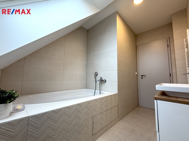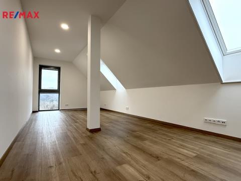 Základní informace: Dispozice: 2+1 Celková užitná plocha: 89 m² Podlahová plocha bytu 78 m² + 11 m² prostor pod schody vč. schodiště Umístění: 1. patro novostavby rodinného domu (rok 2024) Orientace: sever – jih – západ Stav: novostavba, vynikající dobrý stav Dostupnost: prohlídky budou probíhat od 1.3.2026 Popis nemovitosti Nabízíme exkluzivně k pronájmu prostorný a světlý byt situovaný v patře moderní novostavby rodinného domu. Nemovitost se nachází v klidné slepé ulici na okraji Holyně, přímo u vstupu do přírodní lokality Prokopské údolí. Byt je ideální volbou pro nájemce, kteří hledají kombinaci klidného bydlení a bezprostředního kontaktu s přírodou. Dispozice bytu: Bytová jednotka zabírá celé 1. patro domu a nabízí: prostornou halu s novou kuchyňskou linkou jídelní část (stůl + 4 židle) samostatnou toaletu koupelnu s vanou dva velké podkrovní pokoje Samostatný přístup do domu, společná část vstupní chodby pro majitele a nájemce, možnost využití úložných prostor (vestavěná skříň, prostor pod schodištěm). Vybavení a standard: kvalitní vinylové podlahy podlahové vytápění klimatizace v obou pokojích LED osvětlení hliníková okna s izolačním trojsklem střešní okna zn. Velux žaluzie a sítě proti hmyzu datové rozvody (TV / internet) v pokojích zabezpečovací zařízení Kuchyňská linka: Moderní kuchyň je vybavena spotřebiči: lednice s mrazničkou plně integrovaná myčka (60 cm) indukční varná deska horkovzdušná trouba vestavěná digestoř Koupelna: vana umyvadlo se skříňkou přípojka na pračku otopný žebřík zrcadlo s osvětlením Technologie domu: vytápění a ohřev vody přes tepelné čerpadlo fotovoltaická elektrárna (FVE) Parkování: parkování 1 vozu na pozemku pod uzamčením další parkování na ulici před domem Lokalita: Holyně nabízí klidné rezidenční bydlení s výborným napojením na centrum: autobusová zastávka cca 300 m od domu (směr Barrandov / Chuchle) vlaková zastávka Holyně – rychlé spojení na Smíchovské nádraží (metro B) tram zastávka ca. 10 min kompletní občanská vybavenost na Barrandově V blízkosti mj. naleznete: Prokopské údolí nákupní centrum (Kaufland – cca 3 minuty autem) Aquapark Barrandov Platební podmínky: Služby komplet (paušál): 8.000 Kč / měsíc nezúčtovatelné, pevná sazba (topení, voda, elektřina, internet, odpad atd.) Jistota (kauce): 60.000 Kč Další informace: byt je určen pro max. 2–3 osoby možnost úpravy dispozice na 3+kk