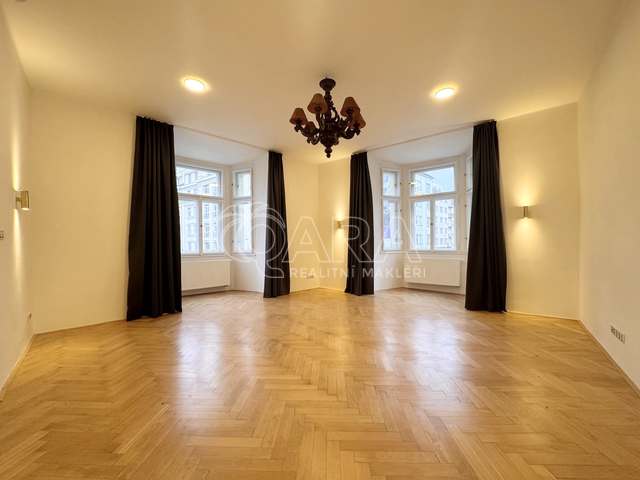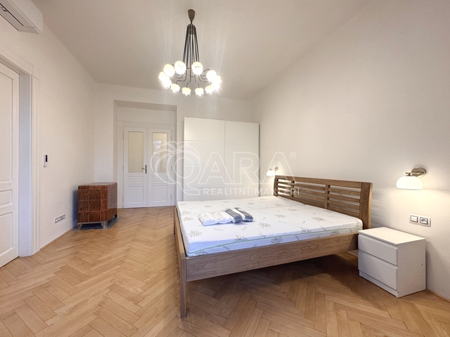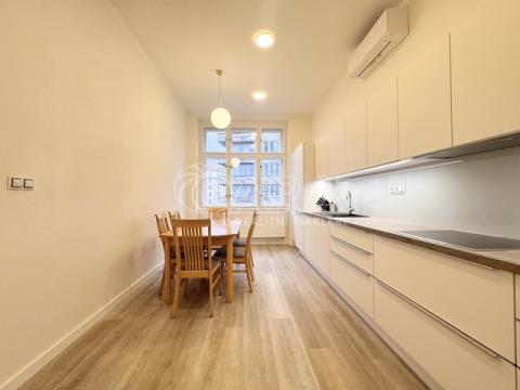 Zprostředkuji Vám pronájem prostorného a částečně zařízeného bytu dispozice 2+1, o výměře 90 m2, na pražských Vinohradech, v domě na rohu ulic Kolínská a Vinohradská. Tento krásný byt prošel před 3 lety kompletní, ale citlivou rekonstrukcí, původní prvky bytu tak zůstaly zachovány. Nově je také byt vybaven klimatizací. V bytě oceníte prostornou kuchyni, s krásnou kvalitní kuchyňskou linkou ve vyšším standardu, vč. vestavných spotřebičů. Dominantou bytu je rohový obývací pokoj, přístupný jak z kuchyně tak z ložnice. Ložnice je prostorná a kompletně vybavena nábytkem. Z ložnice je vstup na malý balkón. Oba pokoje mají dubovou parketovou podlahu. V koupelně je prostorný sprchový kout, WC s malým umyvadlem je umístěno samostatně. Součástí bytu je technická místnost s pračkou. Na vstupní předsíň navazuje prostorná hala, vybavená šatní skříní a botníkem. Vytápění a ohřev teplé vody v bytě zajišťuje kondenzační plynový kotel. Byt je situován ve 2. patře domu s výtahem a má okna jak do ulice Kolínské, tak i Vinohradské. V místě výborná dopravní dostupnost: zastávka tramvaje Radhošťská 1 minuta chůze, stanice metra Jiřího z Poděbrad či Flora (trasa A) cca 7 minut pěšky. Současně dobrá občanská vybavenost: OC Flora, kino, obchody, restaurace, fitness, plavecký bazén Olšanka v docházkové vzdálenosti. Na revitalizovaném náměstí Jiřího z Poděbrad možno navštívit sezonní trhy či kulturní akce. Byt je určen jednotlivci či páru k dlouhodobému pronájmu (min. 12 měsíců). Měsíční náklady: nájem + záloha na služby 1.500 Kč/osoba + přepis plynu a el. energie na nájemce. Jistota + odměna zprostředkovatele. NELZE na spolubydlení či krátkodobé pronájmy typu airbnb.
