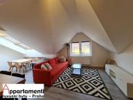 Pronájem podkrovního luxusně zařízeného bytu 2+kk, 73,3m2. Dispozice: předsíň, koupelna se sprchovým koutem a toaletou, další toaleta zvlášť, obývací pokoj s rozkládací sedačkou a kuchyňským koutem, jídelna, ložnice s manželskou postelí. V bytě je klimatizace. Byt lze pronajmout i na kratší období od 3 měsíců a více.