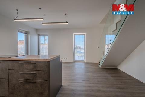 Exkluzivně Vám nabízíme k pronájmu prostorný mezonetový byt 2+kk o užitné ploše 68 m², s terasou a s parkovacím místem v ceně! Byt se nachází ve 3. patře moderního, velmi úsporného domu (PENB B) s výtahem, v soukromém oploceném areálu za VŠB. Vjezd je možný pouze přes el. bránu, za kterou na Vás čeká vlastní parkovací místo! V jednom podlaží se nachází předsíň, toaleta a pokoj s moderní kuchyní vč. mikrovlnky, indukce, myčky, lednice s mrazákem a trouby. Nahoře pak naleznete komoru, pokoj, koupelnu se sprchovým koutem a druhým WC + terasa. V celém bytě je podlahové vytápění a v oknech žaluzie. Součástí bytu je také sklep. Jedná se o klidnou část Pustkovce, v blízkosti veškeré občanské služby i porubský les. Min. doba nájmu 1 rok, pracovní smlouva podmínkou, ne insolvence ani exekuce. Nájem 17 500,- Kč/měs.+ služby 4 200,- Kč/měs. + elektřina (přepis na nájemníka, cca 1000,- Kč/měs.). Vratná kauce 2 nájmy. Majitel vyhrazuje právo na výběr nájemníka. K dispozici ihned, doporučujeme!