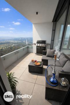 Celková plocha bytu je 77,9 m² s terasou 6,4 m², balkonem 2,1 m², sklepem 3 m² a 2 garážovými stání přímo v domě. Byt se nachází v prestižní novostavbě Nad Arboretem v městské části Černá Pole.