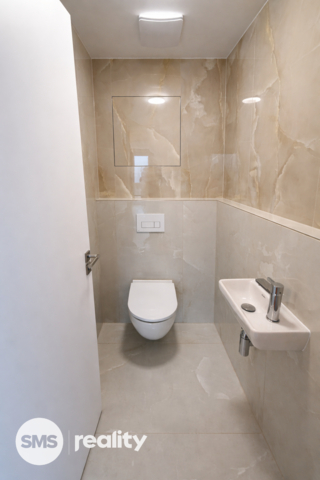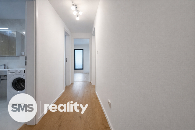 Součástí bytu jsou předokenní žaluzie s možností ovládání přes mobilní telefon, které vám zajistí maximální komfort a soukromí. Kuchyňská linka na míru s kompletními vestavěnými spotřebiči zn. Bosch (myčka, trouba, lednice s mrazákem, indukční varná deska). Do bytu vstupujete prostornou chodbou o výměře 9,8 m². Obývací prostor s kuchyní má výměru 28,6 m², ložnice 14,2 m². Výhodou je prostorná koupelna s vanou 5 m² a samostatná toaleta 2 m², šatna 5 m².