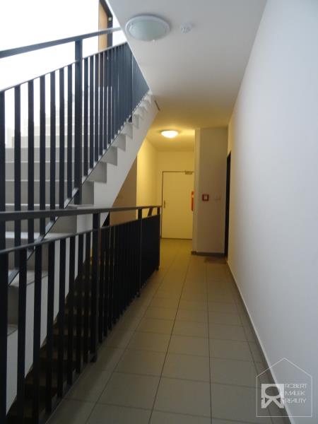 Nabízím k pronájmu byt 2+kk/B + komora + vlastní venkovní parkovací stání, osobní vlastnictví, 45m² (byt 38.72m² + balkón 2.87m² + sklep 3. 41m²) v bytovém komplexu na Praze - západ, Jesenice, ulice Na Okruhu. Byt se nachází ve 2. patře cihlové stavby z roku 2015 (bez výtahu) a je orientován na jihozápadní stranu. Skládá se z předsíně, obývacího pokoje s kuchyňským koutem (kuchyňská linka na míru - elektrický sporák s troubou, lednice s mrazákem, ložnice - šatní skříň, koupelny se sprchovým koutem a toaletou (pračka). Podlahovou krytinou bytu (obývací pokoj s kuchyňským koutem a ložnice) - plovoucí laminátové podlahy v předsíni, koupelně a na toaletě - dlažba. Kabelová televize přivedena do bytu (možnost místního providera UVT). K bytu je vyhrazené venkovní parkovací stání. Kousek od domu se nachází krásný rybník Pančák - místo k relaxaci a sportu. Dobrá dopravní dostupnost - autem na metro Opatov nebo na Budějovickou cca 12 minut. Autobusová zastávka Jesenice - bytovky je cca 400 m od domu. V okolí se nachází veškerá občanská vybavenost (supermarkety, zdravá výživa, obchody, restaurace, fitness centrum, bazén, music bar, cukrárna). V okolí se konají společenské a rodinné akce. Nájem: 17.000,- Kč + velmi nízké poplatky spojené s užíváním bytu: 1.797,- Kč + záloha na elektřinu/měsíc: 1.910, jistota: 17.000,- Kč. Volné ihned. Pro více informací a možnosti prohlídky, kontaktujte makléře nemovitosti.