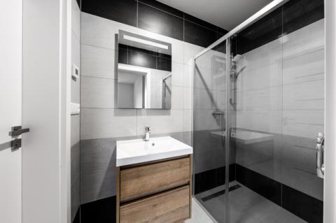 K dlouhodobému pronájmu nabízíme zcela nový byt 2+kk (37 m2) v atraktivní lokalitě v Plzni na Slovanech, ulice Malostranská. Dosud nikým neobývaná bytová jednotka je situována do 2. nadzemního podlaží (z celkových 3) energeticky úsporné novostavby (třída C). K bytu je možné si pronajmout parkovací stání na uzavřeném dvoře domu. Dispozice zahrnuje obývací pokoj s kuchyňským koutem, ložnici, předsíň a koupelnu s toaletou. K bytu náleží sklepní kóje (2 m2). Okna bytu jsou situována do klidného vnitrobloku domu. Byt je vybaven moderní kuchyňskou linkou včetně vestavné elektrické trouby, sklokeramické varné desky, digestoře a myčky nádobí. Dále je součástí koupelnový nábytek a kompletní LED osvětlení. Vytápění je podlahové elektrické s možností samostatné regulace v každé místnosti. Ohřev vody zajišťuje vlastní elektrický bojler. Samozřejmostí jsou samostatná měřidla pro každou jednotku v domě. Pro dosažení ideálních klimatických podmínek, zvláště v letních měsících, jsou v obou místnostech nainstalovány klimatizace. V místě je zajištěna kompletní občanská vybavenost a výborná dopravní dostupnost prostřednictvím MHD. V docházkové vzdálenosti se nacházejí zastávky trolejbusových linek č. 10 a 13 a autobusových linek č. 22, 29 a 30. Lokalita zároveň nabízí široké možnosti pro sportovní a rekreační vyžití. V bezprostřední blízkosti domu se nachází tenisové kurty a moderní sportovní areál Škoda Sportpark, který disponuje zázemím pro in-line bruslení, beachvolejbal, horolezeckou stěnu a další sportovní aktivity. Výhodou je také snadné napojení na oblíbené turistické a cyklostezky podél řeky Radbuzy. Cenové podmínky pronájmu: • Nájemné za byt 13.500 Kč/měsíc a za parkovací stání 1.000 Kč/měsíc • Zúčtovatelné zálohy na energie a služby včetně elektřiny 3.600 Kč/1 osoba/měsíc 4.000 Kč/2 osoby/měsíc • Jistota (vratná kauce) 25.000 Kč • Provize RK za byt 16.400 Kč a za parkovací stání 1.200 Kč Byt je ihned k nastěhování. Pro bližší informace či domluvení prohlídky volejte na uvedený mobilní telefon. Pro zjištění rozměrů místností a objektů v prostoru využijte možnost měření ve virtuální prohlídce pomocí ikony pravítka v levém dolním rohu.
