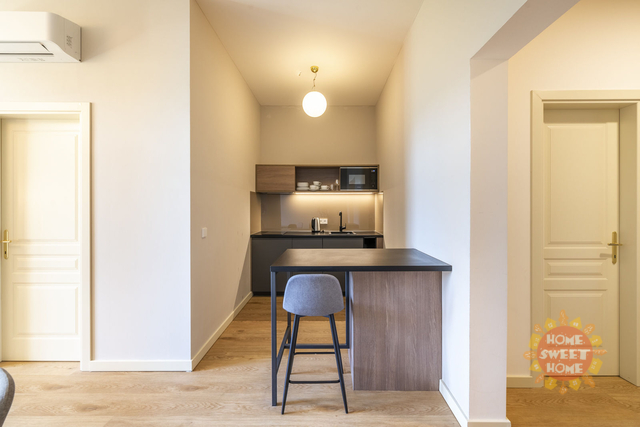 Moderní zařízený byt 2+kk po kompletní rekonstrukci o celkové výměře 43m2 se nachází ve čtvrtém patře cihlového domu s výtahem v nově zrekonstruovaném domě z roku 2021 v ulici Opletalova, Nové Město. Bydlení se nachází ve velice vyhledávané lokalitě a to cca 100 metrů od Václavského náměstí. Byt sestává z prostorného obývacího pokoje s plně vybavenou kuchyňskou linkou, ložnice a koupelny se sprchovým koutem a toaletou. V bytě je pračka. Součástí domu je recepce 24/7 a prádelna. V ceně poplatků je zahrnuta energie, vysokorychlostní Wi-Fi, 68 televizních kanálů, svoz odpadu, úklid společných prostor, recepce. Možnost úklidu a výměna ložního prádla za poplatek. V blízkosti naleznete Vrchlického sady, Slovanský dům (Cinema City), Národní muzeum, Státní opera a mnoho obchodů s módou, restaurací a kaváren. Výborná dopravní spojení: 1min chůze na stanici metra nebo tram zastávku "Hlavní nádraží" nebo 3 min. chůze na stanici metra "Muzeum". Možnost pronájmu od 3 měsíců a déle. Pro bližší informace neváhejte kontaktovat makléře.