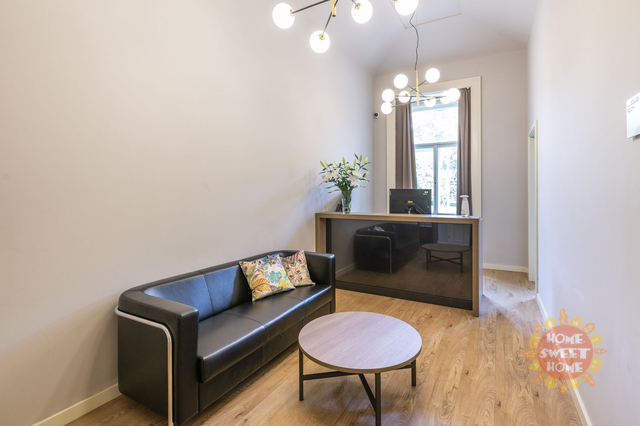 Moderně zařízený byt 2+kk po kompletní rekonstrukci o celkové výměře 43 m² s balkónem se nachází v 5. nadzemním podlaží cihlového domu s výtahem, který prošel rekonstrukcí v roce 2021. Dům je situován v ulici Opletalova, v atraktivní části Nové Město, pouhých cca 100 metrů od Václavské náměstí. Byt tvoří obytný pokoj s plně vybavenou kuchyňskou linkou a manželskou postelí a dále koupelna se sprchovým koutem a toaletou. Součástí domu je recepce s provozem 24/7 a prádelna. V ceně poplatků jsou zahrnuty energie, vysokorychlostní Wi-Fi, 68 televizních kanálů, svoz odpadu, úklid společných prostor i recepční služby. Za příplatek je možné zajistit také doplňkové služby, jako je pravidelný úklid, výměna ložního prádla či BIO koupelnová kosmetika. Atraktivní poloha v srdci města je pár kroků od Václavského náměstí, které je jedním z hlavních obchodních a společenských center Prahy. Najdete zde širokou nabídku obchodů, restaurací, kaváren, hotelů, bank a administrativních budov, divadel, parků, stejně jako významné památky jako například Národní muzeum a Státní opera. Lokalita je zároveň důležitým dopravním uzlem se stanicemi metra Můstek a Muzeum. Výborná dopravní spojení: 1min chůze na stanici metra nebo tram zastávku "Hlavní nádraží" nebo 3 min. chůze na stanici metra "Muzeum". Možnost pronájmu od 3 měsíců a déle. Pro bližší informace neváhejte kontaktovat makléře.
