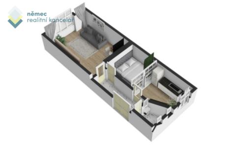 To zahrnuje: zařízenou kuchyňskou linku vč. spotřebičů (varná deska, trouba, lednice s mrazákem a mikrovlnná trouba, pračka i myčka), rozkládací sedací soupravu, jídelní stůl, v předsíni umístěnou prostornou šatní skříň na míru či zařízenou ložnici.
