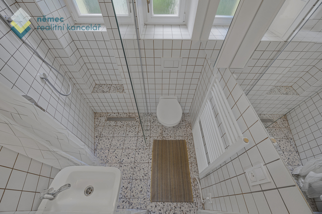 V koupelně najdete sprchový kout, WC a je k dispozici topný žebřík na ručníky.