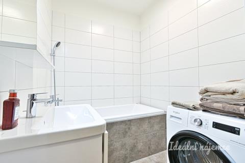 K dlouhodobému podnájmu nabízíme krásný byt o dispozici 2+kk v klidné lokalitě Brno - Žebětín. Žádaná lokalita Brno - Kamechy. Byt o celkové výměře 44 m2 se nachází ve druhém patře cihlové novostavby s výtahem. K bytu navíc patří i prostorná terasa. K dispozici jsou i společné prostory kočárkárny v domě. Byt se nabízí kompletně vybavený moderním nábytkem. Kuchyňský kout disponuje varnou deskou, digestoří, troubou, myčkou, novou lednicí, s mrazákem a součástí je i barové sezení. Ložnice je zařízena prostornou šatní skříní a manželskou postelí s kvalitní matrací. Součástí koupelny je vana, umyvadlo a zcela nová pračka. Toaleta je samostatně oddělená. Možnost připojení kabelové TV a internetu samozřejmostí. Byt je vhodný, jak pro jednotlivce, tak i pro páry. Bytový dům se nachází v bezprostřední blízkosti přírody, zároveň lokalita nabízí veškerou občanskou vybavenost jako například: supermarket Albert, dětská hřiště, kavárny, restaurace a další. Zastávka autobusu je vzdálena cca 5 minut chůze od bytu. Byt bude k nastěhování od 1.3.2026.