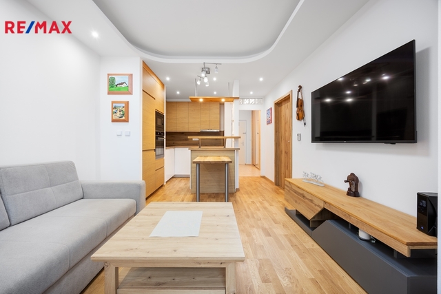 Krásný a slunný byt o dispozici 2+kk s komorou a s terasou a velikosti 48 m2 (z toho terasa 4,5 m2) se nachází v ul. Divišovská na pražském Chodově – Kulatý Chodovec a je určený zájemcům o dlouhodobý podnájem. Je situován ve 4. patře domu s výtahem a je orientovaný na jihovýchod. Je po celkové rekonstrukci kuchyně, koupelny a ložnice. Vše je nové, nepoužité, zatím zde nikdo nebydlel! Byt se nabízí zařízený, viz. fotogalerie. Kuchyň je vybavená vestavěnými spotřebiči – myčka nádobí, mikrovlnná trouba, elektrická trouba, lednice s mrazákem, sklokeramická deska, digestoř. V ložnici je vestavěná skříň, na míru vyrobená postel a nové matrace. V koupelně je rohová vana, pračka a sušička. WC je oddělené. Příjemným benefitem je dostatek úložných prostor. Kromě komory jsou v předsíni prostorné vestavěné skříně. Součástí podnájmu je také podzemní parkovací stání v 1.PP. Cena zahrnuje kromě parkování i spotřebu elektřiny, internet a TV. Kauce je ve výši 2 nájmů. K ceně se připočítávají zúčtovatelné poplatky za 1 os. ve výši 3.500,- Kč / měsíc, 2 os. 4.000,- Kč / měsíc. Byt je vhodný pro 1-2 osoby. Majitel upřednostňuje nekuřáky, bez zvířat. Okolí nabízí klid a množství zeleně. Jsou tu značené cyklotrasy, můžete se vydat např. do nedalekého Přírodního parku Hostivař – Záběhlice. Občanská vybavenost – obchody, restaurace, služby, možnosti jiného sportovního a volnočasového vyžití atd. jsou v docházkové / dojezdové vzdálenosti (např. OC Westfield Chodov). Cca 6 minut chůze od domu je autobusová zastávka MHD Knovízská, zajišťující spojení k nedaleké stanici metra C – Chodov. V blízkosti jsou také nájezdy na Pražský okruh a na dálnici D1. Byt je k dispozici ihned. Máte-li zájem o podnájem tohoto krásného bytu, kontaktujte mě, prosím, e-mailem nebo telefonicky.