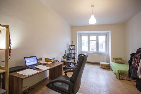 Pronájem pěkného nezařízeného bytu 2+kk (orig. 1+1) v 2. patře činžovního domu (bez výtahu). Byt má vstupní halu s vchody do jednotlivých pokojů, koupelny (sprchový kout), WC a komory. Plynový kotel, dřevěné parkety, dlažba. Dobrá dostupnost na MHD, metro Palmovka 5 min tramvají. Elektřina a plyn se převádí na nájemce (pokud se jedná o občana mimo EU bez trvalého pobytu v ČR, musí mít ručitele). Pronajímatel dá přednost zájemci bez domácích zvířat.
