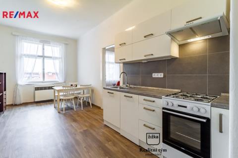 Pronájem bytu 1+1 (2+KK) v ulici Náměstí Jiřího z Lobkovic, Praha 3 - Vinohrady Exkluzivně Vám k dlouhodobému pronájmu nabízíme byt po nedávné kompletní rekonstrukci o dispozici 1+1 / 2+KK a o celkové užitné ploše 50m2 v centru města. Byt nacházející se v šestém nadzemním podlaží se skládá z kuchyně s jídelnou, ložnice, toalety, koupelny a předsíně. Byt je vzhledem k velikosti vhodný pro dvě osoby. Malé zvíře možné po dohodě. V bytě se nachází zánovní kuchyň s plynovým sporákem. Nábytek na fotografiích je možné po dohodě odstěhovat. Celý dům, včetně vnitřních prostor, je ve vynikajícím stavu a pravidelně udržovaný. K bytu také náleží sklepní kóje o velikosti 5m2. Vynikající lokalita Prahy 3 s kompletní občanskou vybaveností a v centru města. V blízkosti se nachází OC Atrium Flora a spousta parků vhodných k procházkám a sportovnímu využití. Výborná dostupnost DP Praha tramvajová zastávka Olšanské hřbitovy cca 150m od domu, stanice metra Flora cca 400m od domu. Vratná kauce ve výši jednoho nájmu. Provizi hradí majitel. Preferujeme nájemní smlouvu na dobu min. 1 roku. PENB nebyl dodán, uvádíme energetickou třídu G.