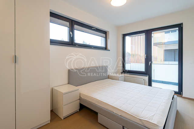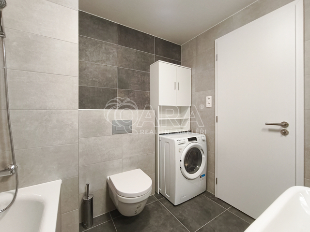 Nabízím k dlouhodobému pronájmu zcela nový byt 2+kk o velikosti 51,2 m² s balkonem. Byt se nachází v 3. NP novostavby v projektu Malešický háj. Okna jsou orientována na severovýchod a mají venkovní elektrické žaluzie, které zajišťují komfortní regulaci světla. K bytu náleží také sklepní kóje. Dům je umístěn v bezprostřední blízkosti Malešického lesa. Pět minut chůze od domu je autobusová zastávka s přímým a rychlým spojením na stanici metra Želivského (11 minut jízdy). Byt je plně vybaven (viz foto) a disponuje dostatečným množstvím úložných prostor. V koupelně je kvalitní sanita značky Villeroy & Boch a pračka se sušičkou (2 v 1). K bytu náleží také parkovací stání, které je možné pronajmout za poplatek 2 000 Kč měsíčně. Poplatky spojené s užíváním bytu pro dvě osoby činí 4 000 Kč + 1 400 Kč elektřina (poplatky jsou hrazeny formou měsíčních záloh s následným ročním vyúčtováním skutečných nákladů). Kauce činí 37 500 Kč. Provize RK: 28 500 Kč. V bytě dosud nikdo nebydlel. Staňte se prvním nájemcem a užijte si zcela nové prostředí! K nastěhování ihned.