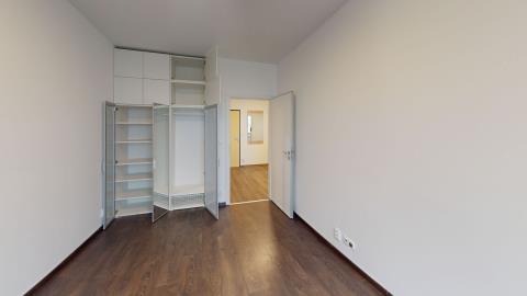 Druhý pokoj - ložnice - je vybaven úplně novou vestavěnou skříní s dostatkem úložného prostoru. Oba pokoje mají přístup na balkon.