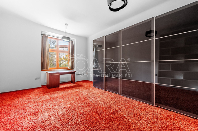 Byt je pronajímán kompletně zařízený. Kuchyňská linka (varná deska, el. trouba, mikrovlnná trouba, digestoř, myčka, lednice, mrazák), jídelní stůl s židlemi, rozkládací sedací souprava, TV, v ložnici manželská postel, psací stůl a velkorysá šatní skříň, další úložné prostory v chodbě, důmyslně ukrytá pračka a dále komora s plynovým kotlem a bojlerem. Plovoucí podlaha, koberec a dlažba. Možnost využití zahrady ve vnitrobloku.
