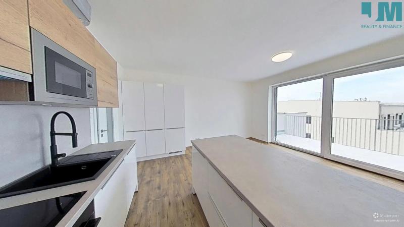 Byt se nachází ve 4. nadzemním podlaží moderního domu s výtahem a nabízí praktickou dispozici 2 + KK o celkové ploše 54 m².
