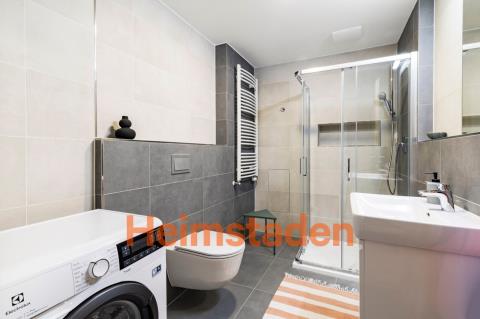 Byt o dispozici 2+kk se skládá z prostorného obývacího pokoje s kuchyňským koutem, samostatné ložnice, předsíně, komory a koupelny s WC. Velkým benefitem je balkon orientovaný do klidného vnitrobloku, ideální pro ranní kávu nebo večerní relax. Interiér je vkusně a prakticky zařízen, nechybí moderní kuchyňská linka s vestavěnými spotřebiči včetně myčky, trouby, indukční varné desky, lednice s mrazákem, dále rozkládací pohovka, jídelní stůl, postel, vestavěné skříně ani pračka. Byt nabízí dostatek úložného prostoru a je připraven k okamžitému nastěhování. Součástí nájmu je také jedno garážové parkovací stání. Elektřina a internet budou převedeny na nájemce.