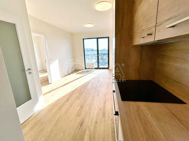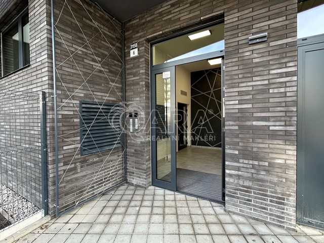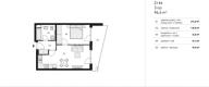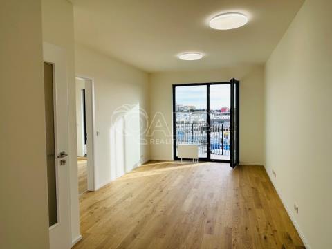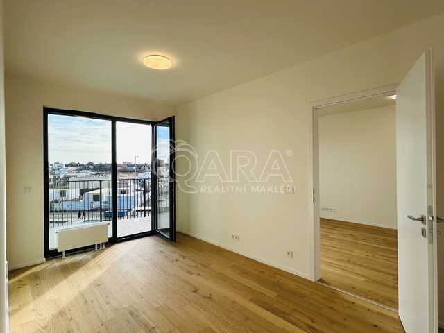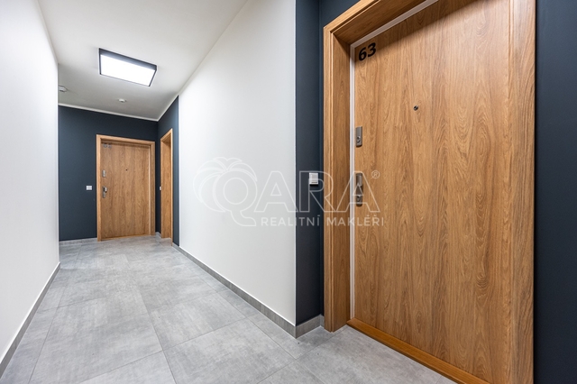 Byt sestává ze vstupní chodby, koupelny s vanou a toaletou, obývacím pokojem se zcela novým, kompletně vybaveným kuchyňským koutem, ložnice a vstupem na prostornou terasu s výhledem na nově vznikající zástavbu rodinných domků se zahrádkami. Nízkoenergeticky náročná jednotka disponuje chytrou domácností, kvalitní dřevěnou podlahou a je zpracována ve vysokém standardu. V budově je k dispozici také kočárkárna.