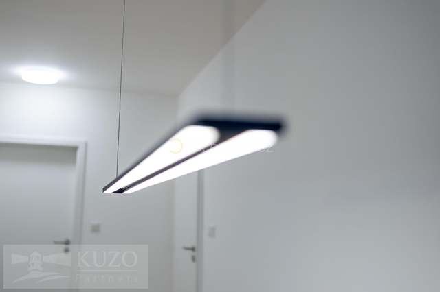 Celý prostor je laděn v čistém, moderním designu, který podtrhuje svěžest novostavby.