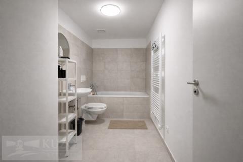 Celý prostor je laděn v čistém, moderním designu, který podtrhuje svěžest novostavby.