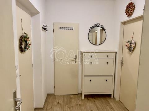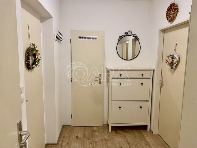 K dlouhodobému pronájmu nabízíme slunný byt 2+kk. Hledáme spolehlivého a dlouhodobého nájemníka s doložitelnými příjmy. Bydlení je dostupné od 1.2.2026. Byt je v rámci domu ideálně umístěn, orientován je na západ, celé odpoledne zde tedy máte sluníčko, výhoda umístění v 5. patře je ta, že vám neblokuje výhled ani právě sluníčko protější dům. Od protějšího sídliště dům odděluje škola, městský okruh vůbec neslyšíte, protože je byt orientovaný na druhou stranu. Velkou výhodou je právě jihozápadně orientovaný balkón. Obývací pokoj je od ložnice oddělen posuvnými dveřmi. Sousedé jsou zde perfektní, parkování kolem domu na modrých zónách nebo je zde cca 12 parkovacích míst pro všechny. Nejbližší metro Střížkov je dostupné autobusem za 3 minuty nebo pěšky za 11. Součástí vybavení je: - pračka - regály v komoře - šatní skříň v předsíni - lednička - komody - 2* barová židle - televizní stěna - poličky - pohovka + konferenční stolek - velká šatní skříň v ložnici - 2* noční stolek - rám postele (160*200 cm) + rošty - knihovna - pracovní stůl - plastová okna s dvojskly + žaluzie - plovoucí podlaha - dálkové topení a dálkový ohřev vody - indukční varná deska - v bytě není myčka! - nová pračka - balkón - sklepní kóje Orientační velikost místností: Obývací pokoj a kuchyňský kout: 25 m2 Ložnice: 12,78 m2 Koupelna: 4,9 m2 Toaleta: 1,41 m2 Komora: 1,5 m2 Předsíň: 5,11 m2 -------------------- Celkem: 50,76 m2 + balkón: 5,36 m2 + sklepní kóje: 2,7 m2 Finanční přehled: Měsíční nájemné: 22 500 Kč Měsíční poplatky: 2 472 Kč / 2 osoby + 1 100 Kč elektřina (3 572 Kč celkem) Jistota (kauce): 22 500 Kč Provize RK: 1 měsíční nájemné + DPH - elektřina je součástí poplatků a nebude se převádět!