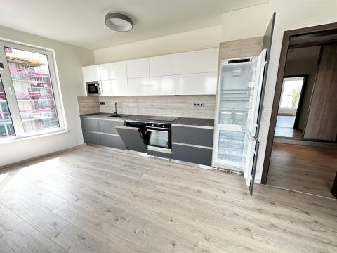 Veškeré vybavení bytu včetně interiérových dveří a plovoucích podlah je zcela nové. Velké okna zaručují dostatek přirozeného denního světla.