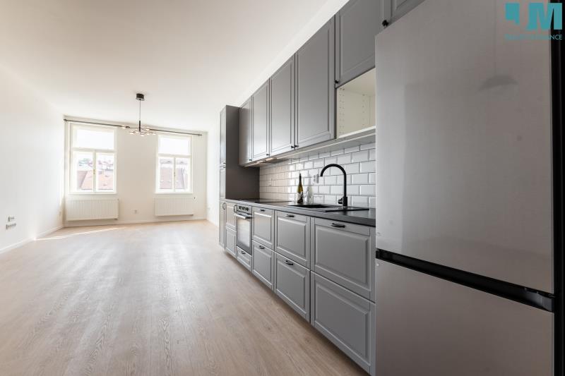 Nabízíme k pronájmu moderní byt 2+kk po kompletní rekonstrukci přímo na Karlově náměstí v Třebíči. Byt má celkovou plochu 58 m² a součástí je také praktická komora o velikosti 3 m². Byt je velmi světlý a slunný, což oceníte během celého dne. Nachází se v menším bytovém domě, díky čemuž zde panuje klidná a tichá atmosféra. Ideální kombinace bydlení v centru a příjemného soukromí. Byt je zcela nový – nové podlahy, elektroinstalace, moderní kuchyňská linka se spotřebiči (lednice, myčka, trouba, indukční varná deska). Dispozici doplňují nově osazené stylové a krásné dveře mezi chodbou a kuchyní s obývacím pokojem (aktuálně nejsou zachyceny na fotografiích). Vytápění je řešeno s možností digitálního ovládání. K fotografiím je k dispozici také videovizualizace interiéru. Virtuální prohlídku aktuálně připravujeme, byt však chceme zájemcům nabídnout co nejdříve, proto jej zveřejňujeme již nyní. Lokalita nabízí perfektní dopravní dostupnost – zastávka MHD je 1 minutu chůze od domu, autobusové nádraží přibližně 7 minut. V pěší vzdálenosti je kompletní občanská vybavenost – obchody, restaurace, kavárny, školy, lékaři i sportoviště. K relaxaci slouží blízké parky a procházky podél řeky. Byt je k dispozici ihned. Nájemné: 15.000 Kč / měsíc Zálohy na služby: 4.000 Kč / měsíc (elektřina bude převedena na nájemníka) Vratná kauce: 20.000 Kč Provize RK: 15.000 Kč Těšíme se na společné prohlídky bytu.