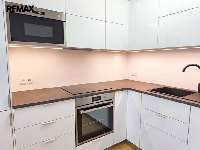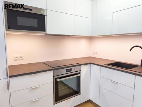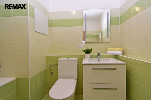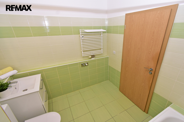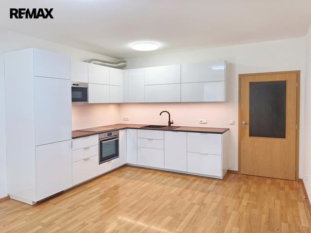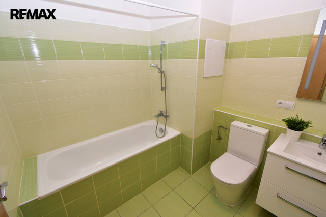 Bytová jednotka o podlahové ploše 49,76 m2 Vám nabízí prostornou vstupní chodbu, komoru, koupelnu (s vanou, umyvadlem se skříňkou, zrcadlem, toaletou a místem na pračku a sušičku) a ložnici. Dále obývací pokoj s kuchyňským koutem včetně vestavných spotřebičů (vše značky Ikea) a balkón 10 m2 s výhledem do zeleně. Nový kuchyňský kout je vybaven moderními spotřebiči: sklokeramickou varnou deskou, digestoří, elektr. troubou, mikrovlnnou troubou, myčkou, lednicí s mrazákem, dále integrovaným košem na tříděný odpad. V ložnici a obývacím pokoji nově namontované osvětlení. V koupelně nová toaleta, umyvadlo se skříňkou a zrcadlo s osvětlením. Byt je velmi světlý a slunný, nově vymalován a připraven pro nového nájemce.