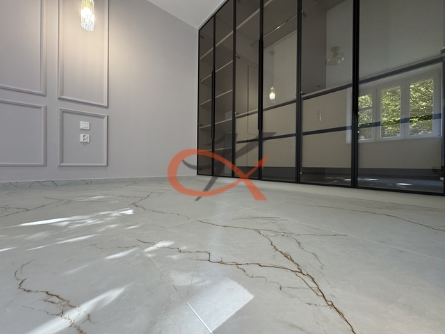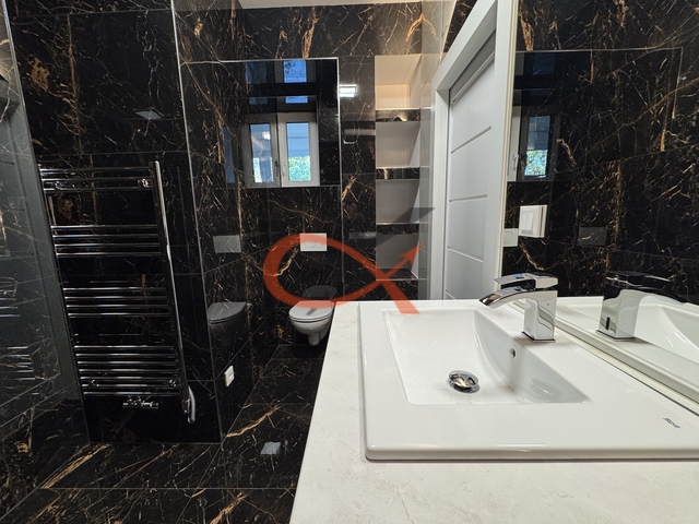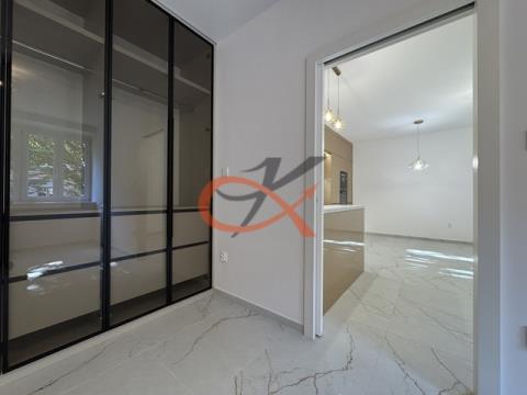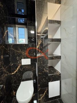 Nabízíme k podnájmu moderní a nadstandardně vybavený byt 2+kk po kompletní rekonstrukci, umístěný v přízemí cihlového domu na ulici Křižná ve Valašském Meziříčí. Interiér bytu byl navržen s důrazem na detail, komfort a kvalitu provedení. Součástí rekonstrukce jsou nové podlahy, omítky, vestavěné úložné systémy a designové osvětlení včetně LED podsvícení, které dotváří příjemnou atmosféru celého prostoru. Dominantou bytu je luxusní kuchyňská linka v třpytivě zlatém dekoru, doplněná černými vestavěnými spotřebiči Bosch – indukční varná deska, horkovzdušná i mikrovlnná trouba, myčka, digestoř a lednice s mrazákem. Linka je osazena výsuvnými systémy značky Blum pro maximální komfort a kvalitu zpracování. Součástí je také granitový dřez značky Franke, který podtrhuje elegantní vzhled kuchyně. Kombinace zlatých prvků, černých spotřebičů a bílých podlah v mramorovém designu působí velmi sofistikovaně. Ložnice je vybavena prostornou vestavěnou skříní na míru, která nabízí dostatek úložného prostoru. Koupelna zaujme svým elegantním provedením – walk-in sprchový kout, toaleta, designové LED zrcadlo, pračka se sušičkou a kvalitní sanitární vybavení v luxusním stylu. Praktické niche výklenky poskytují další úložné místo. Byt disponuje podlahovým vytápěním, které zajišťuje příjemnou tepelnou pohodu po celý rok. V koupelně ještě navíc topný žebřík. Nachází se v lokalitě s výbornou dostupností do centra města, v blízkosti vlakového nádraží, obchodní zóny Křižanova pila, a v pěší vzdálenosti je i ZŠ a MŠ. Byt je vhodný pro maximálně dvě dospělé osoby nebo pár s jedním dítětem. Podnájem je určen bez domácích mazlíčků. Tento byt je ideální volbou pro náročné zájemce, kteří hledají stylové, klidné a komfortní bydlení s nádechem luxusu. Vratná kauce 35.000,- provize ve výši 1 nájmu.