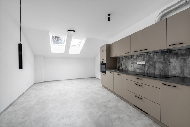 K dlouhodobému pronájmu nabízíme zcela nový byt 2+kk (58 m2) s balkonem (4 m2) v atraktivní lokalitě v Plzni na Slovanech, ulice Malostranská. Dosud nikým neobývaná bytová jednotka je situována do 3. nadzemního podlaží energeticky úsporné novostavby (třída C). K bytu je možné si pronajmout parkovací stání na uzavřeném dvoře domu. Dispozice zahrnuje obývací pokoj s kuchyňským koutem, ložnici, předsíň a koupelnu s toaletou. Balkon přístupný z ložnice je orientovaný do klidného vnitrobloku. K bytu náleží sklepní kóje (2 m2). Součástí vybavení je moderní kuchyňská linka s vestavnou elektrickou troubou, sklokeramickou varnou deskou, digestoří a myčkou nádobí. Byt je dále vybaven koupelnovým nábytkem, kompletním LED osvětlením. Vytápění je podlahové elektrické s možností regulace v každé místnosti. Ohřev vody zajišťuje vlastní elektrický bojler. Spotřeba energií je měřena samostatně pro každý byt. Pro dosažení ideálních klimatických podmínek, zvláště v letních měsících, jsou v obou místnostech nainstalovány klimatizace. V místě je zajištěna kompletní občanská vybavenost a výborná dopravní dostupnost prostřednictvím MHD. V docházkové vzdálenosti se nacházejí zastávky trolejbusových linek č. 10 a 13 a autobusových linek č. 22, 29 a 30. Lokalita zároveň nabízí široké možnosti pro sportovní a rekreační vyžití. V bezprostřední blízkosti domu se nachází tenisové kurty a moderní sportovní areál Škoda Sportpark, který disponuje zázemím pro in-line bruslení, beachvolejbal, horolezeckou stěnu a další sportovní aktivity. Výhodou je také snadné napojení na oblíbené turistické a cyklostezky podél řeky Radbuzy. Cenové podmínky pronájmu: • Nájemné za byt 15.900 Kč/měsíc a za parkovací stání 1.000 Kč/měsíc • Zúčtovatelné zálohy na energie a služby včetně elektřiny 3.800 Kč/1 osoba/měsíc 4.200 Kč/2 osoby/měsíc • Jistota (vratná kauce) 30.000 Kč • Provize RK za byt 19.300 Kč a za parkovací stání 1.200 Kč Byt je ihned k nastěhování. Pro bližší informace či domluvení prohlídky volejte na uvedený mobilní telefon. Pro zjištění rozměrů místností a objektů v prostoru využijte možnost měření ve virtuální prohlídce pomocí ikony pravítka v levém dolním rohu.