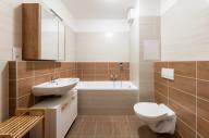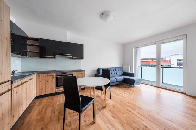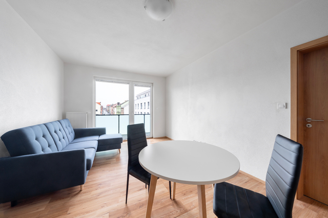 K dlouhodobému pronájmu nabízíme převážně zařízený byt 2+kk s terasou a garážovým parkovacím stáním v širším centru Plzně na Jižním Předměstí, ulice Poděbradova. Bytová jednotka je umístěna v 6. nadzemním podlaží (z celkových 8) energeticky velmi úsporné novostavby (třída B). Dispozice bytu zahrnuje obývací pokoj s kuchyňským koutem, ložnici, prostornou předsíň, koupelnu a samostatnou toaletu. Terasa přístupná z obývacího pokoje se rozpíná po celé šířce bytu. Byt je vybaven moderní kuchyňskou linkou s vestavnou elektrickou troubou, indukční varnou deskou, digestoří, myčkou nádobí, mikrovlnnou troubou, lednicí a mrazákem. Součástí vybavení je také rozkládací sedačka, jídelní stůl se židlemi, postel s rošty (bez matrací), šatní skříň, koupelnový nábytek a kompletní osvětlení. Všechna okna mají vnitřní žaluzie. Vytápění je centrální (Plzeňská teplárenská), totéž dodávka teplé vody. Spotřeba energií je měřena samostatně pro každý byt. Středová poloha bytu v zatepleném domě přispívá nejen k vyššímu tepelnému komfortu, zvláště v zimních měsících, ale také k úspoře nákladů na jeho vytápění. Pro TV přenos je k dispozici společná anténa. Připojení k internetu s rychlostí až 2 Gb/s zajišťují poskytovatelé jako O2, Vodafone, T-Mobile a další. Cenové podmínky pronájmu: • Nájemné 17.400 Kč/měsíc • Zúčtovatelné zálohy na energie a služby včetně elektřiny 3.500 Kč/1 osoba/měsíc 4.000 Kč/2 osoby/měsíc • Jistota (vratná kauce) 35.000 Kč • Provize RK 21.100 Kč K nastěhování ihned. Pro bližší informace či domluvení prohlídky volejte na uvedený mobilní telefon. Pro zjištění rozměrů místností a objektů v prostoru využijte možnost měření ve virtuální prohlídce pomocí ikony pravítka v levém dolním rohu.