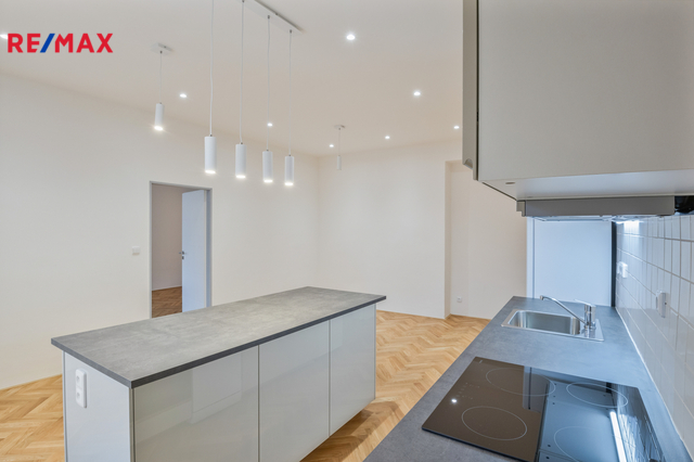 Pronájem bytu 2+kk v družstevním vlastnictví po rekonstrukci, vysoký standard bydlení. Nabízíme moderní byt 2+kk o rozloze 65 m², umístěný v 2. nadzemním podlaží domu v ulici U Kněžské louky 32, Praha 3. Byt zahrnuje obývací pokoj s kuchyňským koutem a ostrůvkem, velmi prostornou ložnici, předsíň, vstupní chodbu, koupelnu s WC a komoru. Jednotka je po kompletní rekonstrukci, má příjemný moderní design a čisté provedení. Vytápění i ohřev vody zajišťuje v bytě plynový kondenzační kotel, jako topná tělesa slouží radiátory. Dům není vybaven výtahem. Byt je určen k dlouhodobému podnájmu. Cena za služby (na 2 osoby) je 1585,- Kč měsíčně, podnájemce si převede elektřinu i plyn přímo na sebe. Dopravní dostupnost: Zastávka MHD Balkán je přímo před domem, 2 min pěšky. (6 min na metro Vysočanská). Zastávka tramvaje Spojovací je 7 min pěšky, jezdí odtud tramvajové linky 1, 9, 11, 31 a 98. (20 min do centra). Veškerá občanská vybavenost je v pěší dostupnosti. Pronajímatel si vyhrazuje právo vybrat si podnájemce.