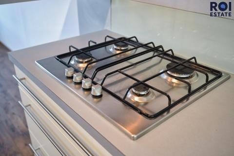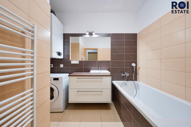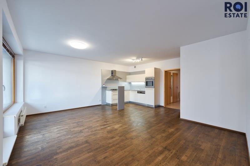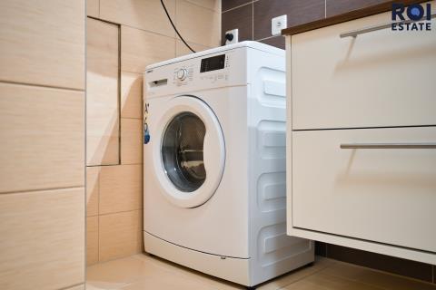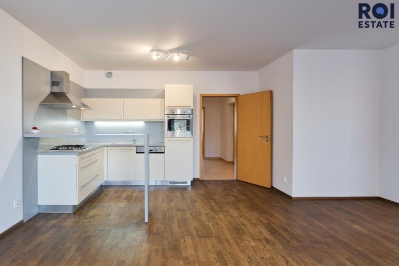 Dominantou bytu je velký obývací pokoj s kuchyňským koutem. Otevřený, světlý prostor, který dává volnost v uspořádání nábytku. Kuchyňská linka je vybavena myčkou, plynovou varnou deskou, elektrickou troubou a lednicí, takže máte funkční základ a zbytek už je jen o stylu. Stačí jídelní stůl, pár židlí, pohovka a byt začne žít.