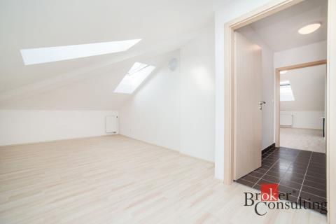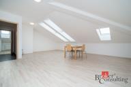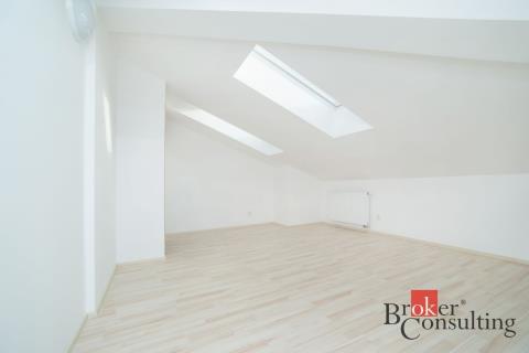 Nabízíme pronájem podkrovního bytu 2+KK v 6.patře v tiché ulici generála Selnera v Kladně. Podlahová plocha je 86,9m2 ale díky zkosené střeše uvádíme 66,9m2. Byt se skládá z menší ložnice, prostorového obývacího pokoje s kuchyňským koutem, koupelny s vanou a záchodem který je součástí koupelny - oddělený stěnou. Před bytem je prostorná komora/sklad. Parkovací stání před domem v ceně. Je vybaven kuchyňskou linkou s myčkou. Skvělá dostupnost do Prahy (autem 25 km), MHD 100 m od domu, občanská vybavenost kompletní (OC Oáza 100 m, školka 300 m, škola 200 m, oplocené dětské hřiště v polouzavřeném vnitrobloku). Celkem je potřeba zaplatit pro nastěhování: Nájem na první měsíc 15.000kč + poplatky (topení, voda, elektřina, úklid spol.prostor), jedna kauce vratná a provize. Budeme se těšit na prohlídce.