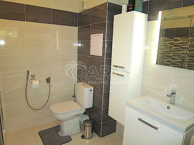 Zprostředkujeme Vám k pronájmu velmi hezký, moderně vybavený byt 2+kk, o celkové výměře a to včetně terasy 70,9 m2 v klidné lokalitě Svémyslice – Praha východ. Byt se nachází ve třetím, posledním, nadpodlaží cihlové novostavby, jehož součástí je také parkovací místo, které je umístěno přímo před domem. Vlastní byt sestává z předsíně z které se dostaneme do koupelny, ložnice a dále pak do obývacího pokoje, propojeného s kuchyňským koutem, jehož kuchyňská linka je vybavena kvalitními spotřebiči. Nedílnou součástí bytu je terasa, která vybízí k odpočinku a pohledem do okolí plné zeleně. Tato rozvíjející se lokalita, která nabízí již zmiňované okolí plné zeleně, nedaleké dětské hřiště a také rybník, nabízí také velmi příjemnou dostupnost do našeho hlavního města. Nedaleko od domu je MŠ, basketbalové hřiště, obecní úřad, kostel a autobusová zastávka ze které se pohodlně dostaneme do Letňan nebo na Černý most. Dva kilometry od domu je nádraží Zeleneč, odkud se vlakem dostaneme za 20 minut na Hlavní nádraží do Prahy, nebo za 13 minut do lokality Praha – Vysočany. K ceně nájemného 19.000,-Kč je potřeba připočíst 4.000,-Kč za celkové poplatky. Vzhledem k těmto všem atributům, doporučujeme tento hezký byt v příjemné lokalitě s dobrou dostupností k pronájmu.